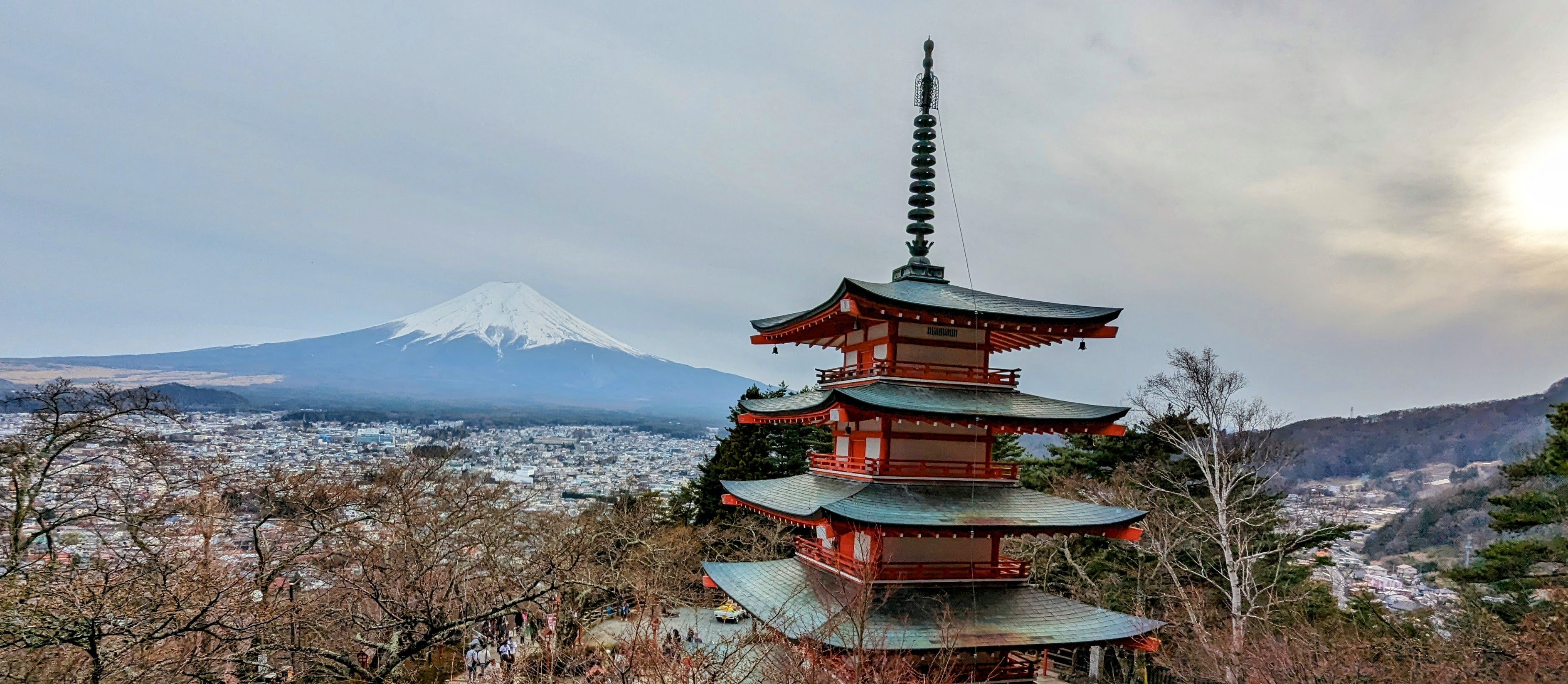 Mount Fuji on a semi-clear day. Famous Pagoda.